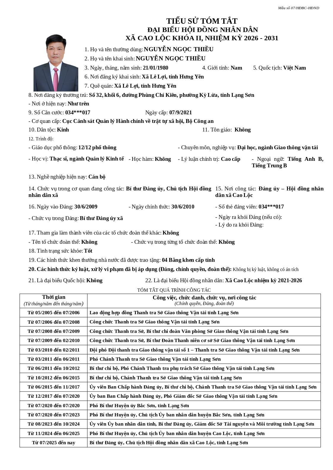 | Tiêu đề văn bản | Nghị quyết xác nhận tư cách đại biểu Hội đồng nhân dân nhiệm kỳ 2026-2031; Danh sách Đại biểu HĐND xã Cao Lộc khóa II, Nhiệm kỳ 2026-2031 | ||
