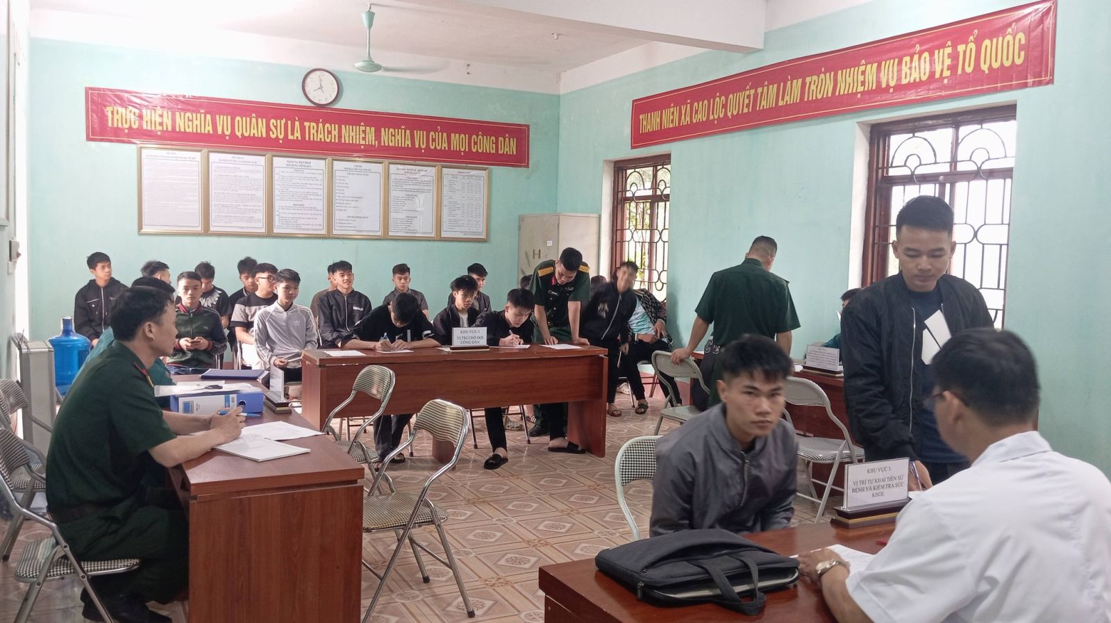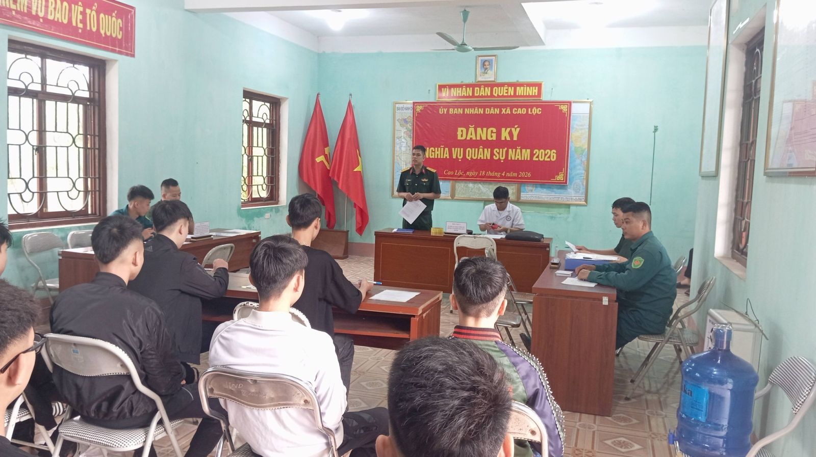 Trong ngày 18/4/2026 Thanh niên trên địa bàn xã đã hăng hái đến đăng ký tại hội trường Ban CHQS xã bảo đảm đúng thời gian quy định, không khí nghiêm túc, trách nhiệm.