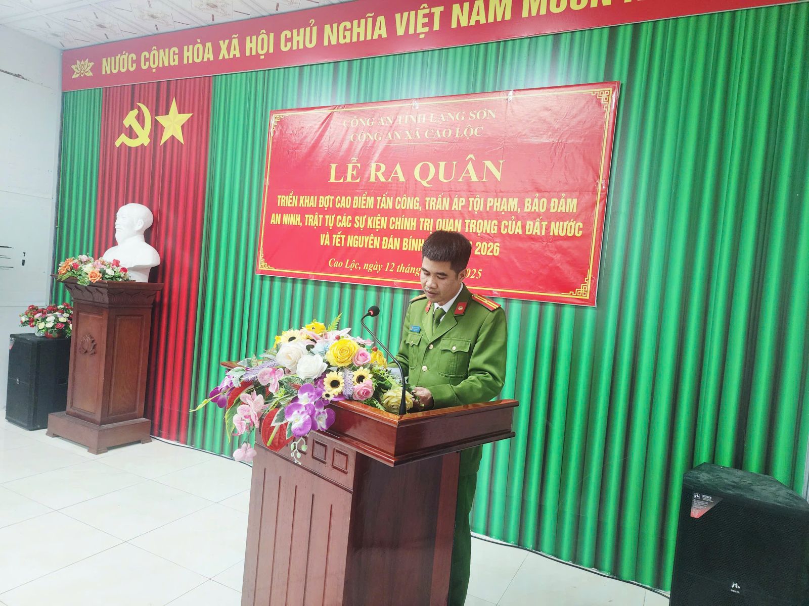 Sáng ngày 12/12/2025, Công an xã Cao Lộc long trọng tổ chức Lễ ra quân mở đợt cao điểm tấn công, trấn áp tội phạm, bảo đảm an ninh, trật tự (ANTT) phục vụ các sự kiện chính trị – xã hội đặc biệt quan trọng của đất nước.