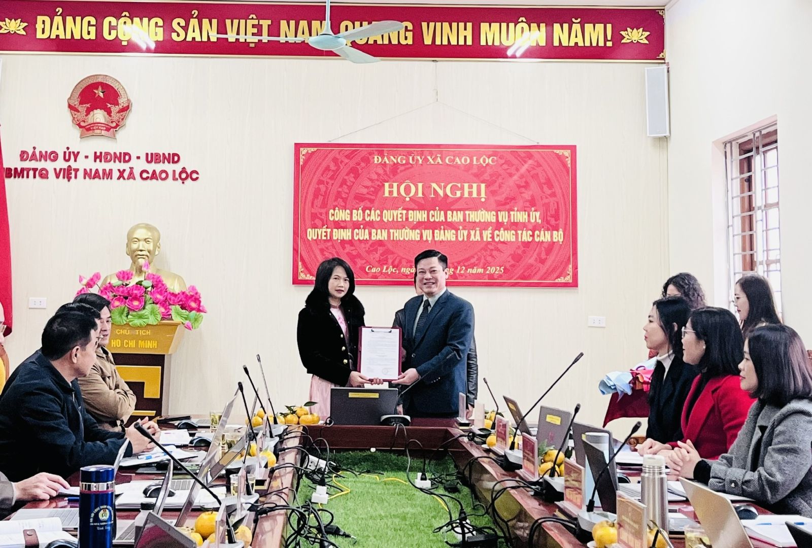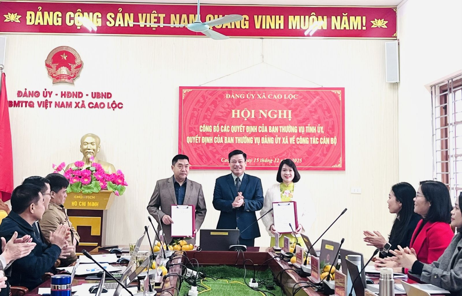 Sáng ngày 15/12/2025, Đảng ủy xã Cao Lộc đã tổ chức Hội nghị công bố quyết định của Ban Thường vụ Tỉnh uỷ, quyết định của Ban Thường vụ Đảng ủy xã về công tác cán bộ.
