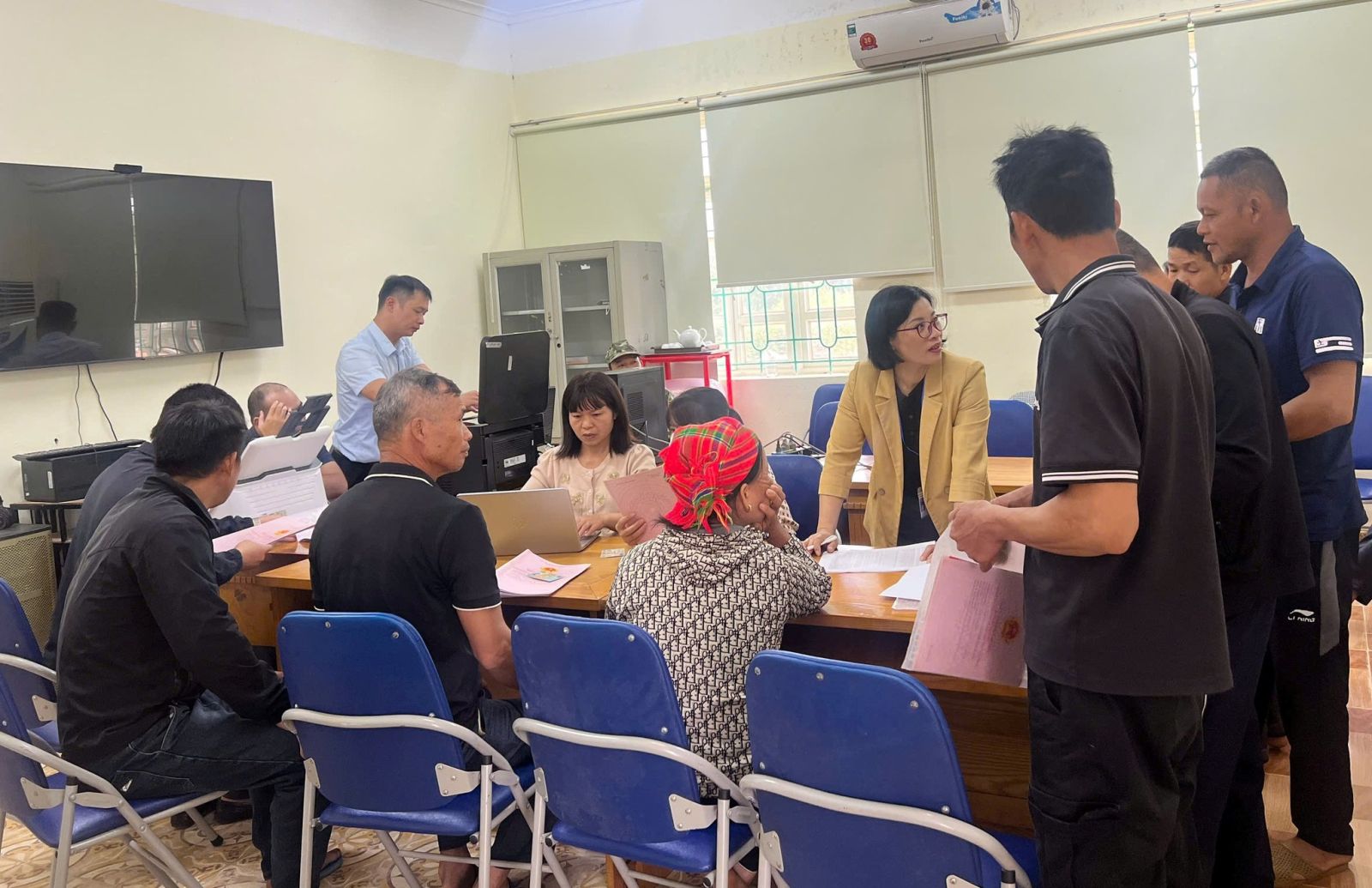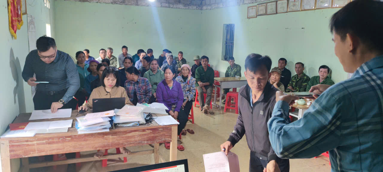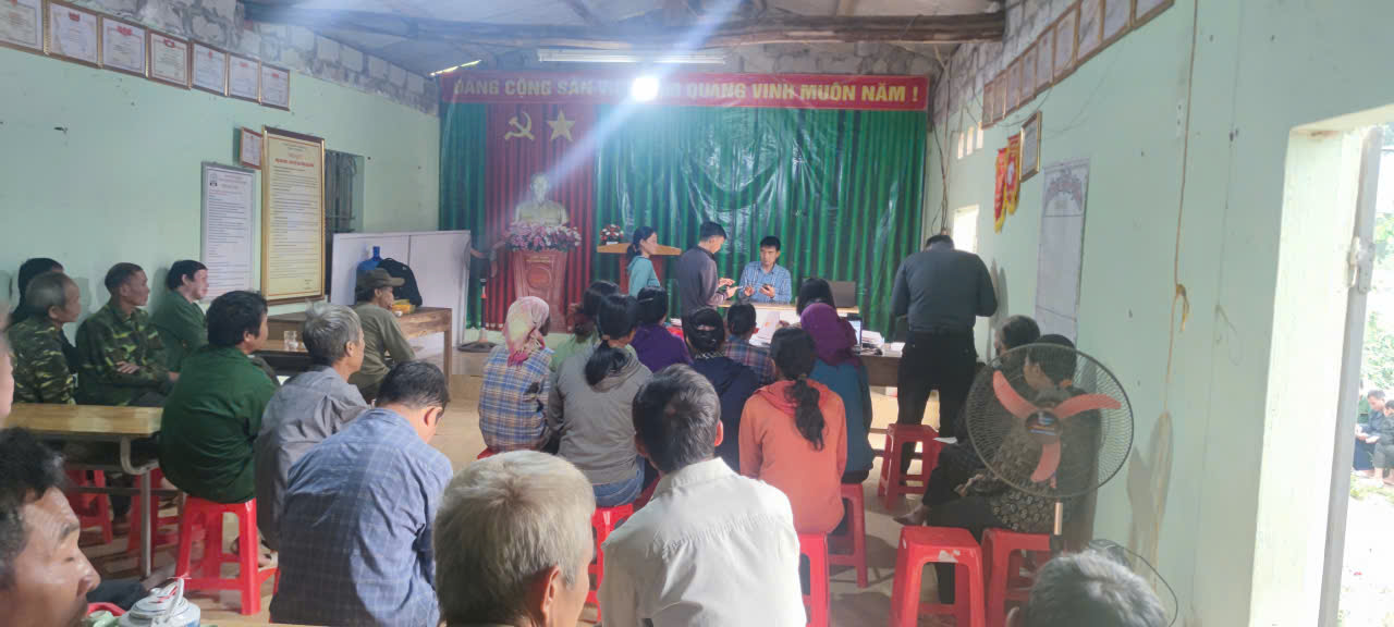 Tổ công tác số 01 tiến hành thu thập cơ sở dữ liệu đất đai thôn Bản Cưởm tại Nhà văn hóa thôn Bản Cưởm