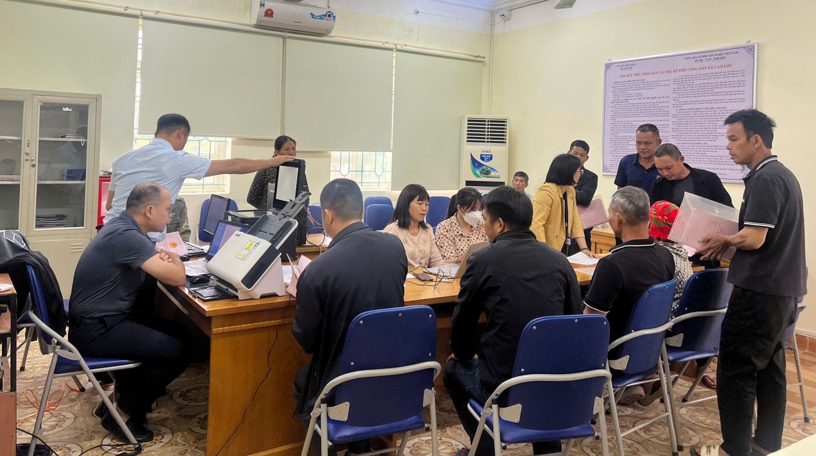 Tổ công tác số 02 tiến hành thu thập cơ sở dữ liệu đất đai thôn Bản Héc tại Phòng tiếp công dân xã Cao Lộc