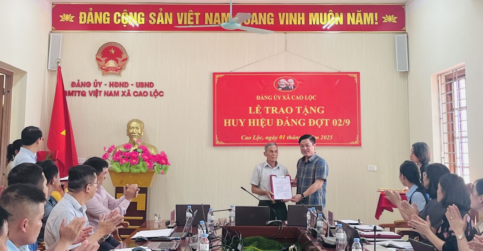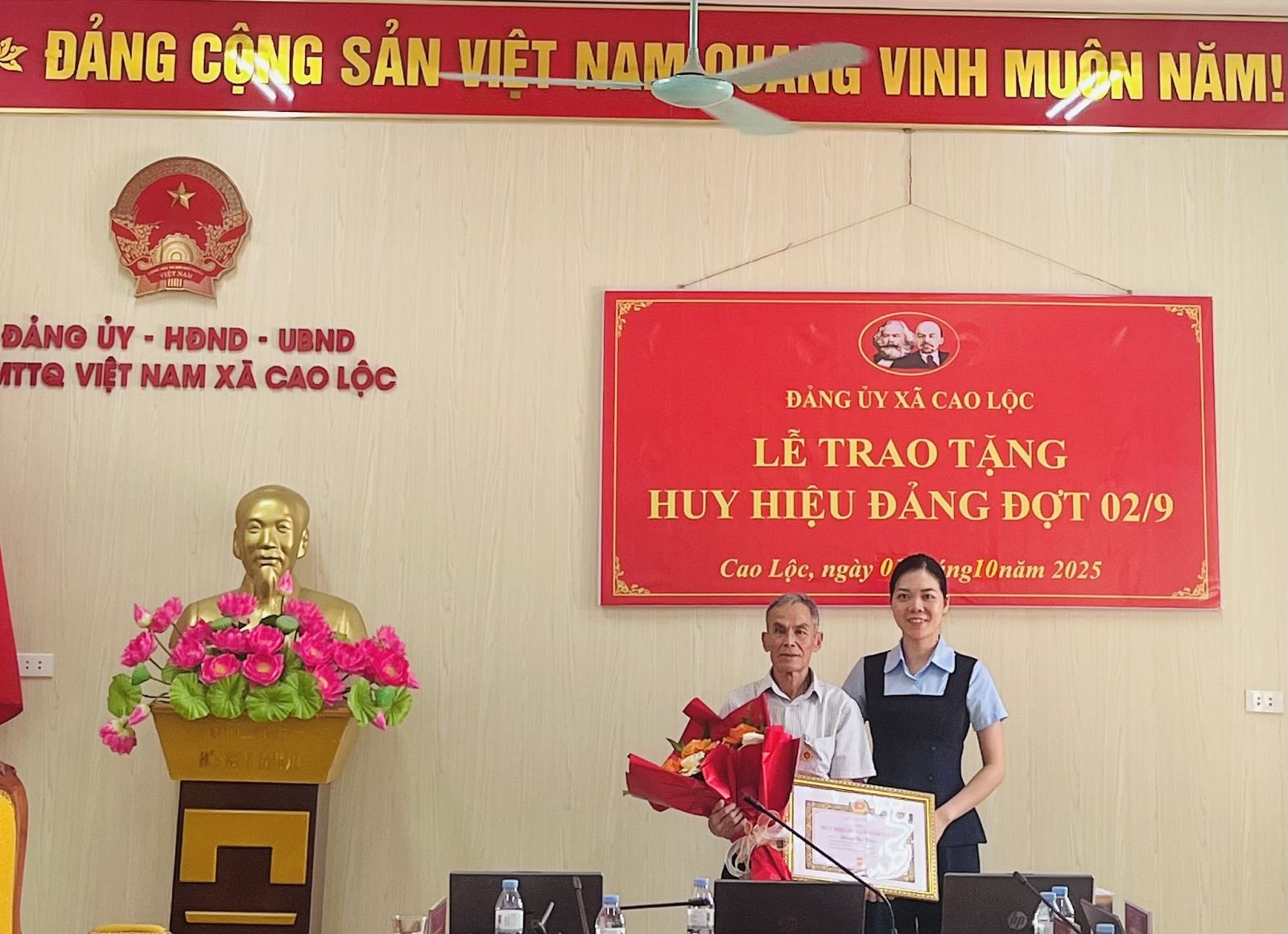 Chiều ngày 01/10/2025, Đảng ủy xã Cao Lộc tổ chức Lễ trao tặng Huy hiệu 50 năm tuổi Đảng cho đồng chí Hoàng Văn Thêm, đảng viên lão thành sinh hoạt tại Chi bộ thôn Bản Dọn, Đảng bộ xã Cao Lộc, tỉnh Lạng Sơn.