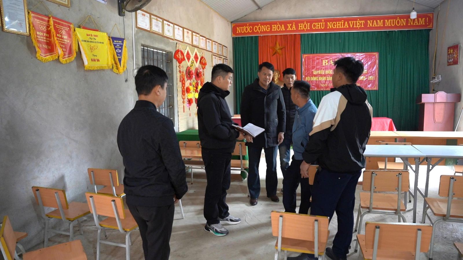 - Việc chuẩn bị cơ sở vật chất, điều kiện hạ tầng phục vụ ngày bầu cử.