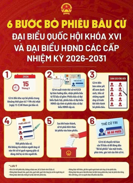 6 bước bỏ phiếu bầu cử đại biểu Quốc hội khóa XVI và đại biểu HĐND các cấp nhiệm kỳ 2026-2031 ![]()
