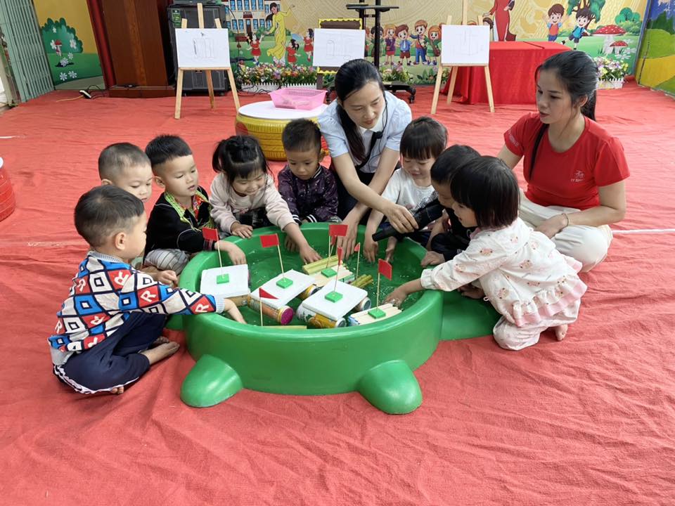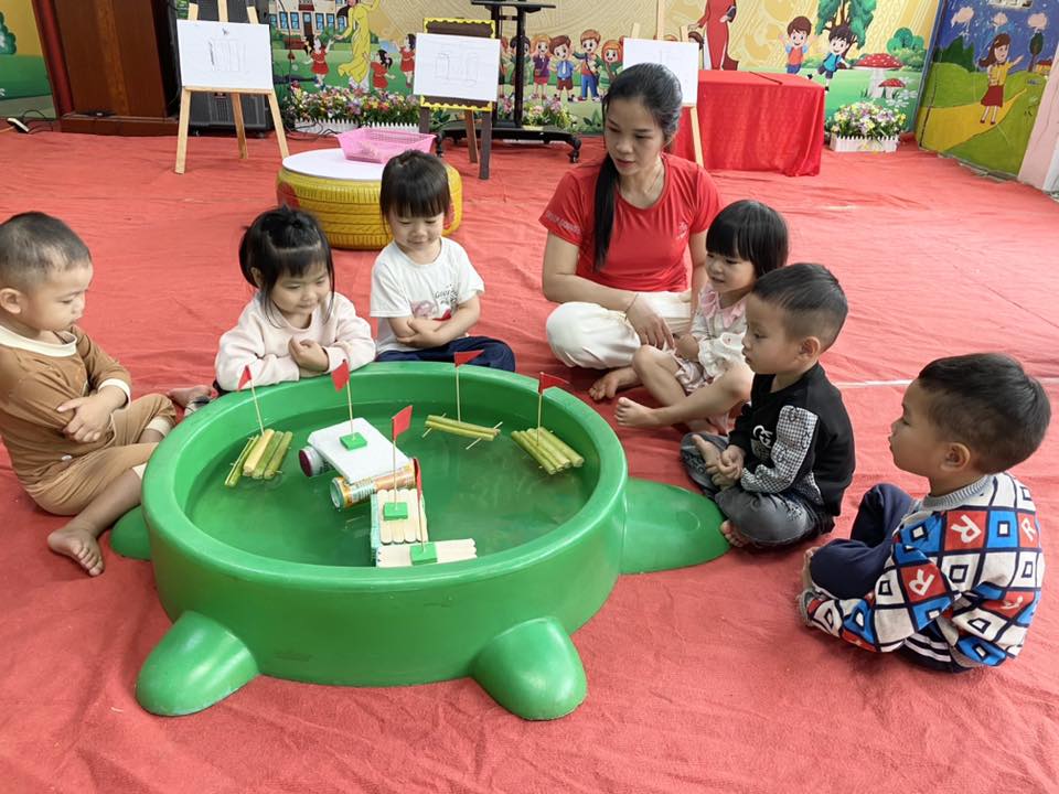 Tiết 1: Làm bè nổi trên mặt nước (Quy trình EDP) tại lớp mẫu giáo 3-4 tuổi do cô Nông Thị Ngọc lên lớp. Tiết học diễn ra sinh động, gần gũi, thân thiện, giúp trẻ hứng thú, tích cực phối hợp để tạo ra được sản phẩm theo mục tiêu bài học.