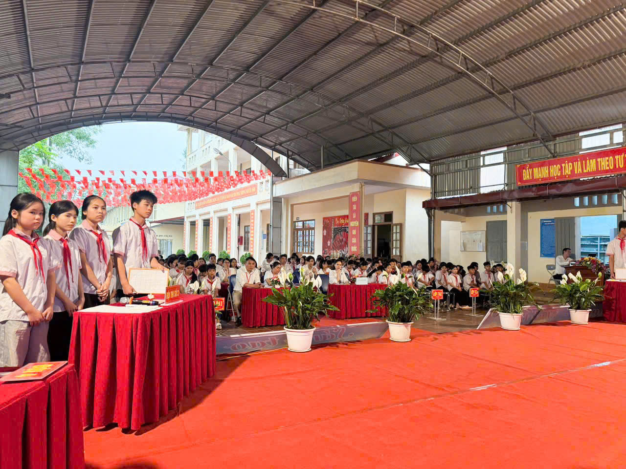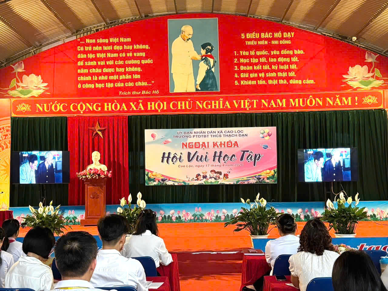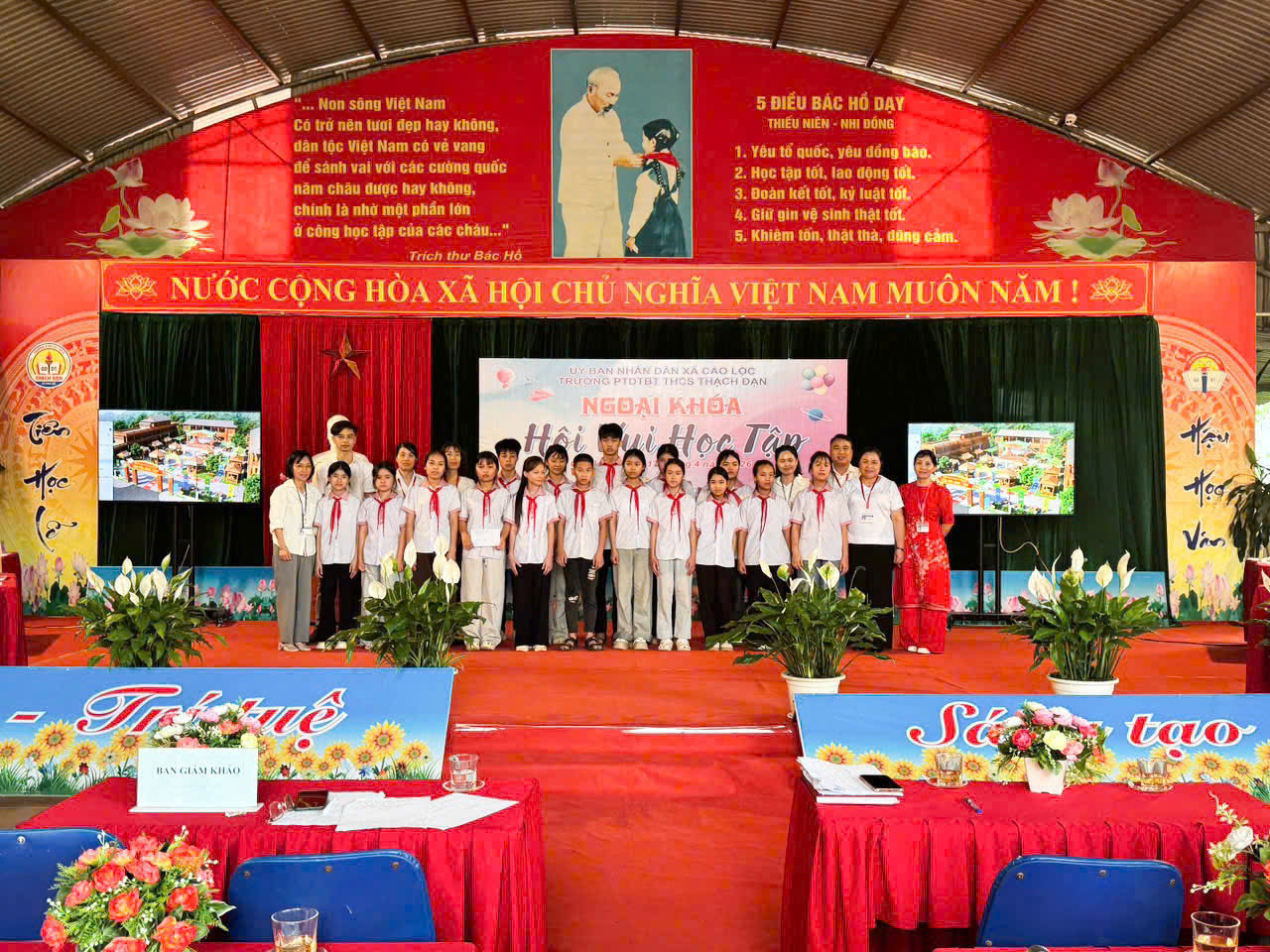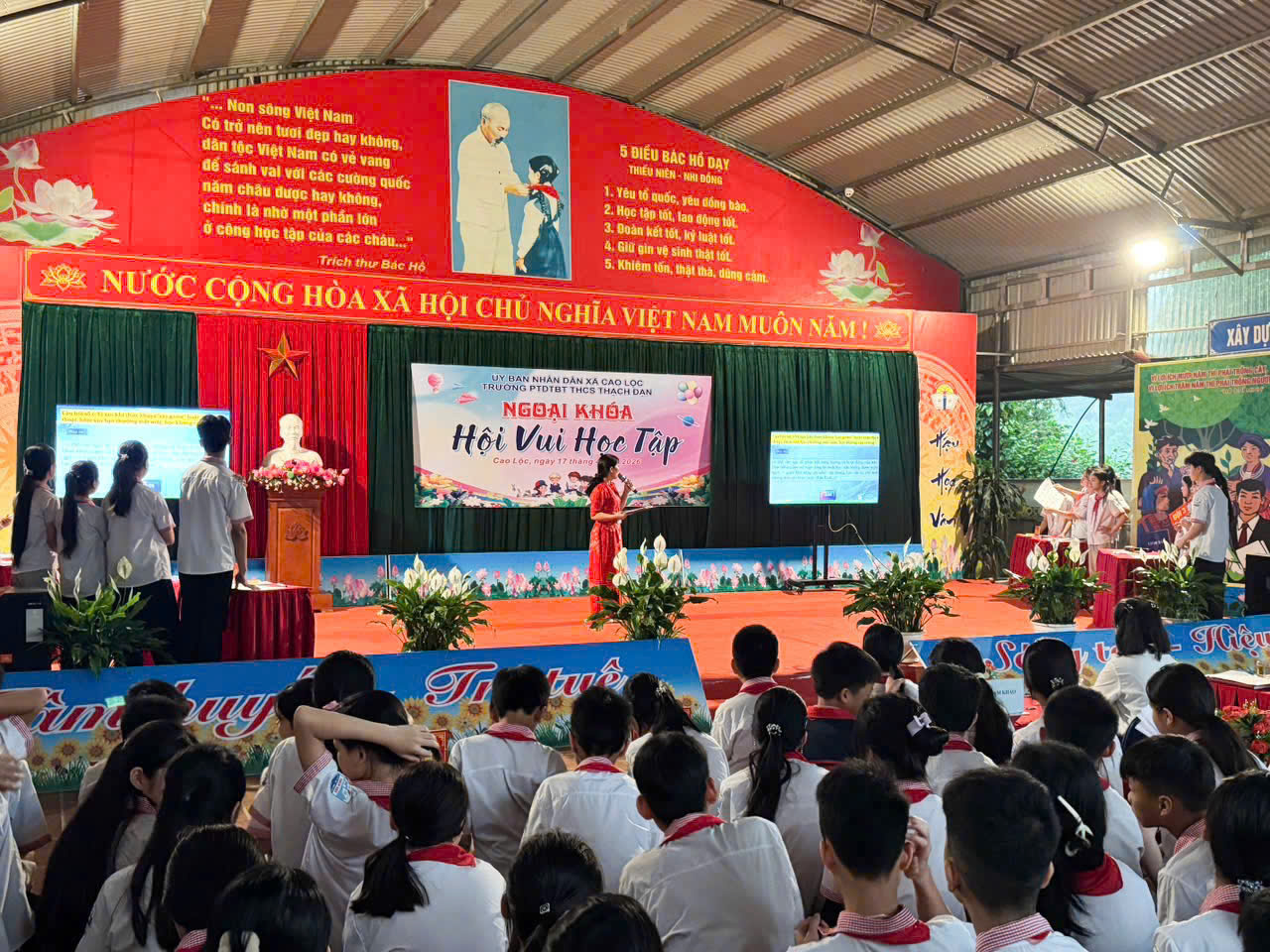Sáng ngày 17/4/2026, tại sân trường PTDTBT THCS Thạch Đạn, Liên đội nhà trường đã tổ chức thành công chương trình "Hội vui học tập" năm học 2025 – 2026. Đây là hoạt động ý nghĩa nhằm chào mừng kỷ niệm 51 năm Ngày Giải phóng miền Nam (30/4/1975 - 30/4/2026) và 140 năm Ngày Quốc tế Lao động (1/5/1886 - 1/5/2026), tạo sân chơi bổ ích và không khí thi đua học tập sôi nổi cho học sinh toàn trường.