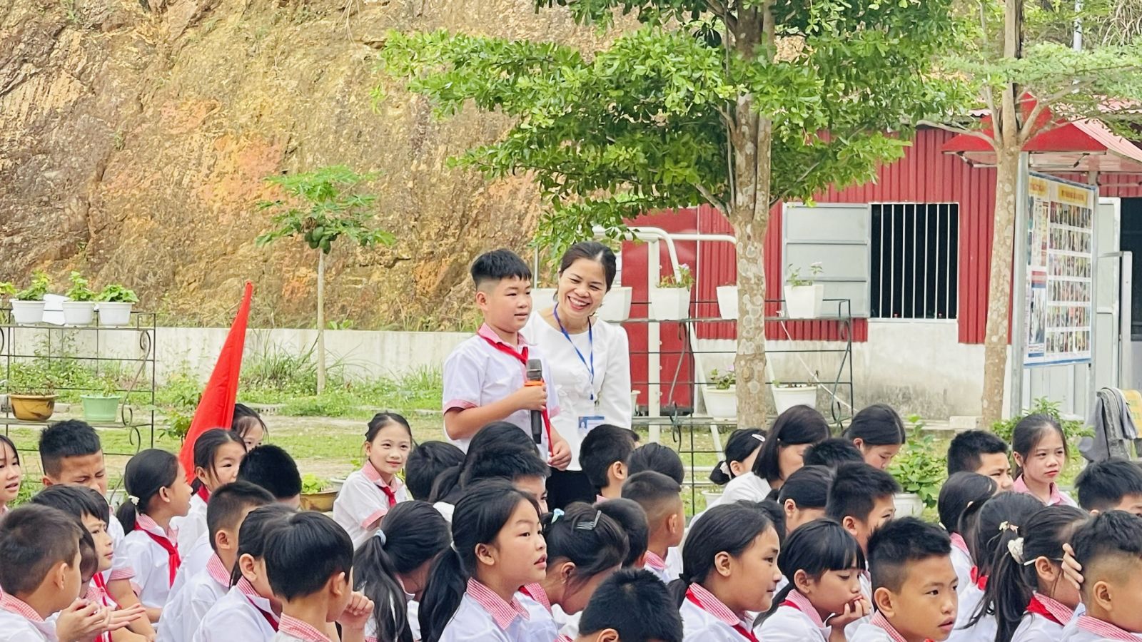 Ảnh: em Hứa Anh Khoa, lớp 5B phát biểu cảm nghĩ tại tiết học ngoại khóa