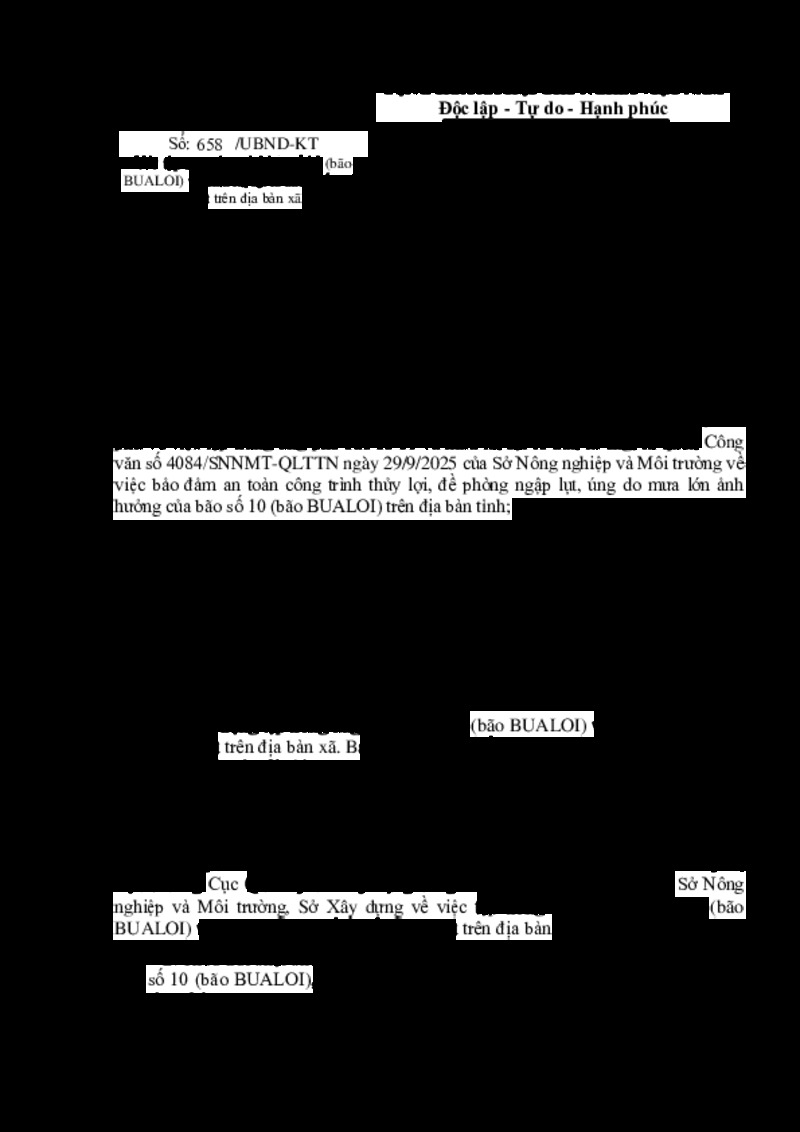 Tiêu đề văn bản | Công văn tập trung ứng phó bão số 10 (bão BUALOI) và mưa lũ, sạt lở đất, lũ ống, lũ quét trên địa bàn xã | ||