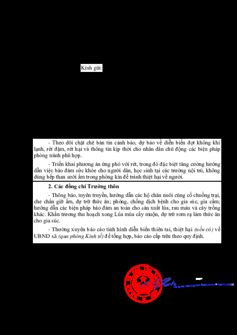 | Tiêu đề văn bản | Công văn về việc chủ động ứng phó với rét đậm, rét hại trên địa bàn xã | ||