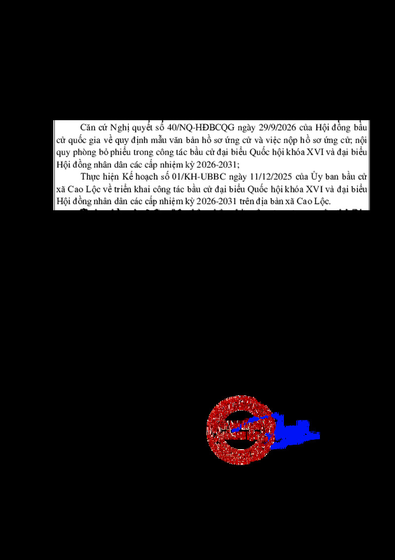 | Tiêu đề văn bản | Thông báo về việc trực tiếp nhận hồ sơ ứng cử đại biểu Hội đồng nhân dân xã Cao Lộc nhiệm kỳ 2026-2031 | ||