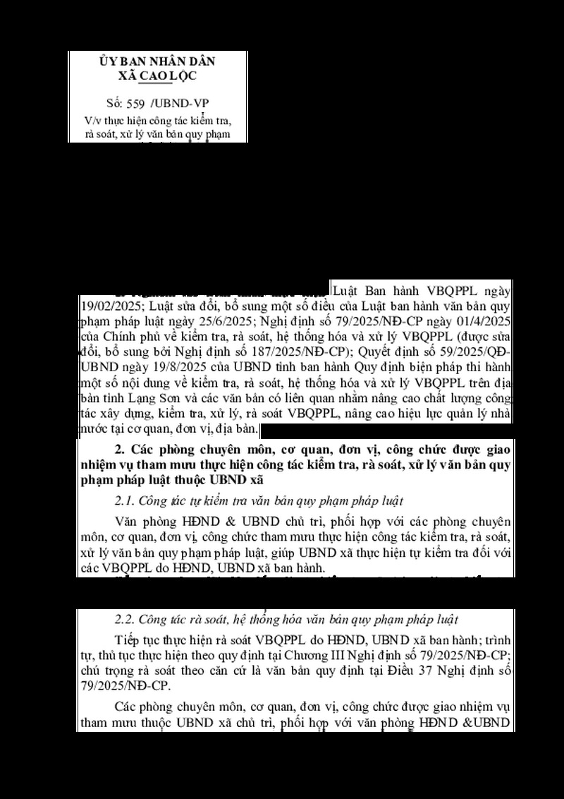 | Tiêu đề văn bản | Về việc thực hiện công tác kiểm tra, rà soát, xử lý văn bản quy phạm pháp luật. | ||